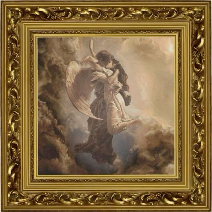 Kompozícia diela je vystavaná na dramatickom kontraste mäkkých oblakov a svetelného prelomu, ktorý zvýrazňuje objatie oboch postáv. Scéna pôsobí ako vizuálna metafora záchrany, odovzdania a transcendencie – príklad romantického spiritualizmu, ktorý zdôrazňuje silu citov a nadpozemského spojenia.
